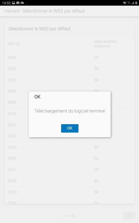 Si les données d'accès sont correctes, l'application se connecte au serveur i-record. Les données nécessaires, telles que les licences et les mises à jour de logiciels, sont téléchargées. Lorsque ce processus est terminé, le message suivant apparaît :